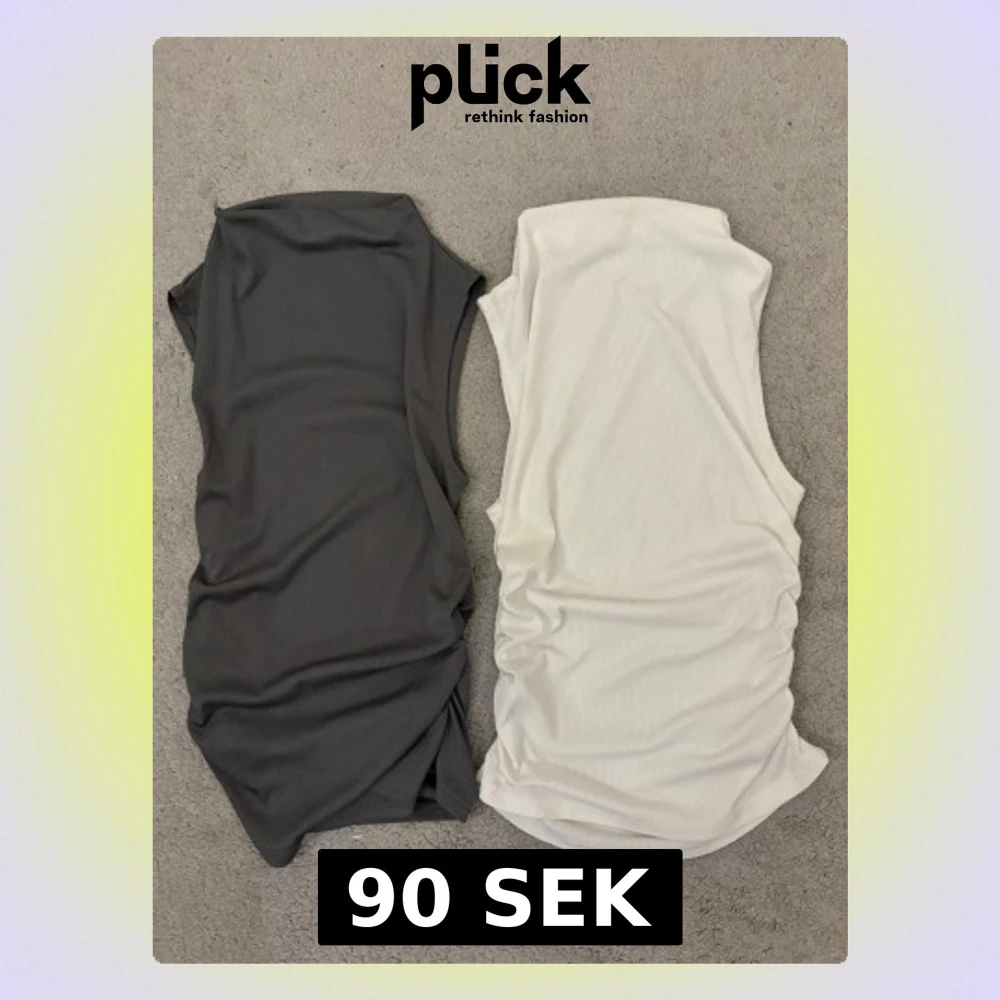 Två stilrena ribbade toppar i ärmlös modell, en i vit och en i mörkgrå. Fint att ha tillsammans med jeans eller någon kjol! Materialet är också super skönt