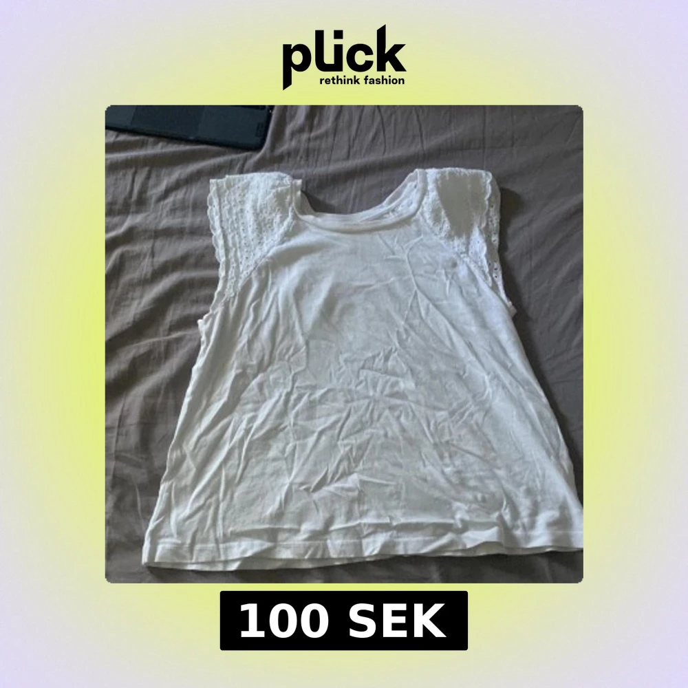 Säljer en vit ärmlös topp från H&M i storlek S. Toppen har broderade spetsdetaljer på axlarna och en rund halsringning. Perfekt för sommarens varma dagar och enkel att matcha med jeans eller kjol.
