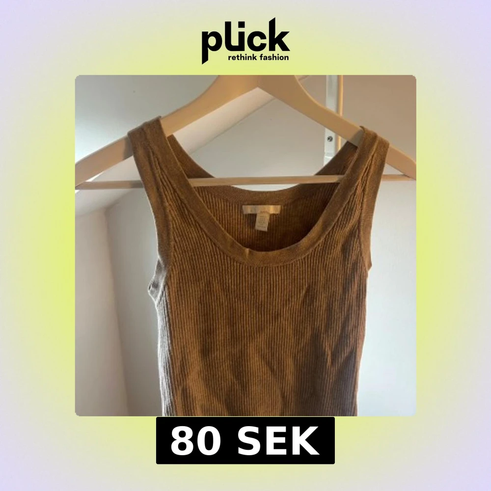 Snygg ribbad linnetopp i brun färg från H&M. Modellen är ärmlös med rundad halsringning och har en slim passform som sitter skönt mot kroppen. Perfekt att styla med jeans eller shorts för en chill look.