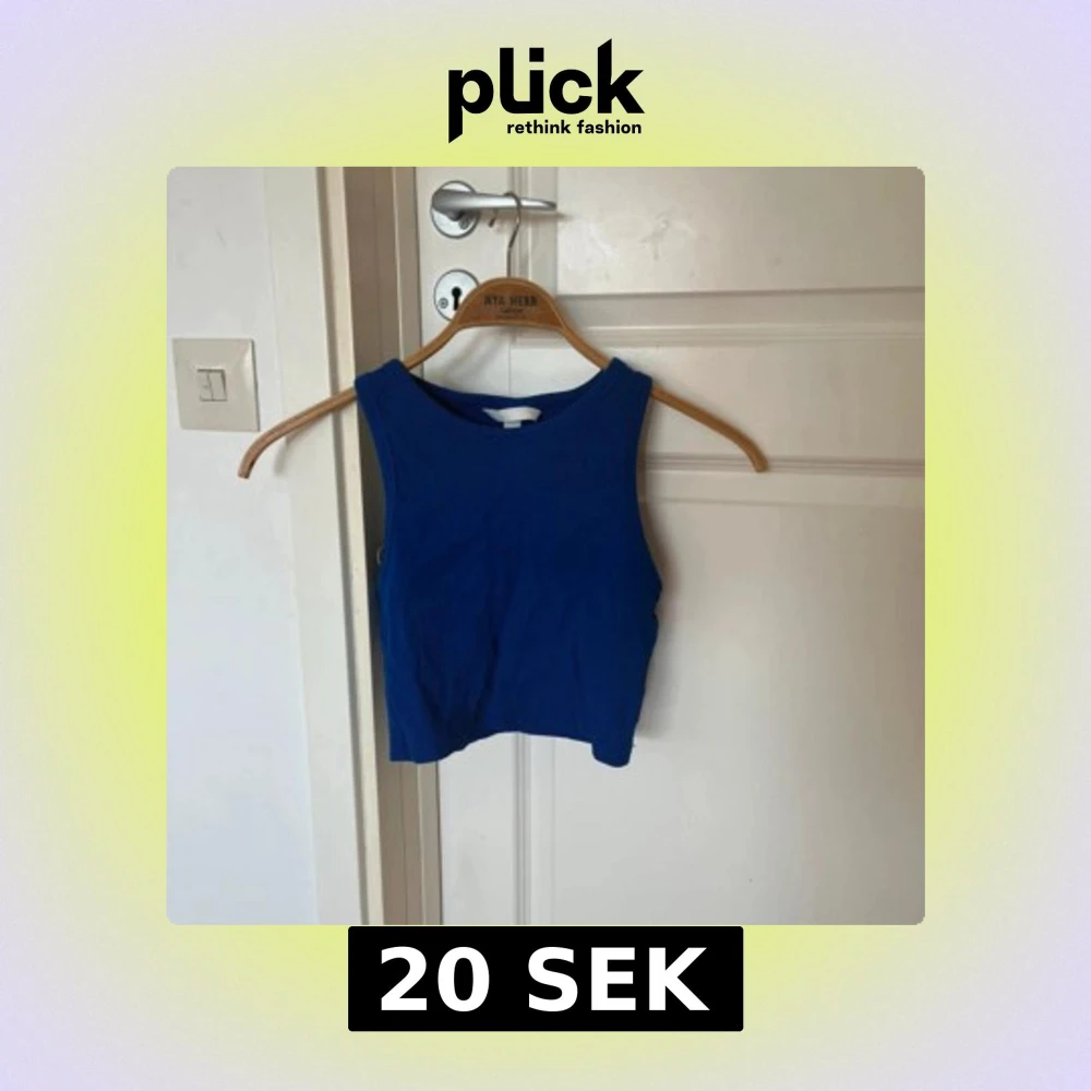 Snygg blå croppad linnetopp med breda axelband och rund halsringning. Perfekt för varma dagar eller att styla lager på lager. Enkel och stilren design som är lätt att matcha med jeans eller kjol.