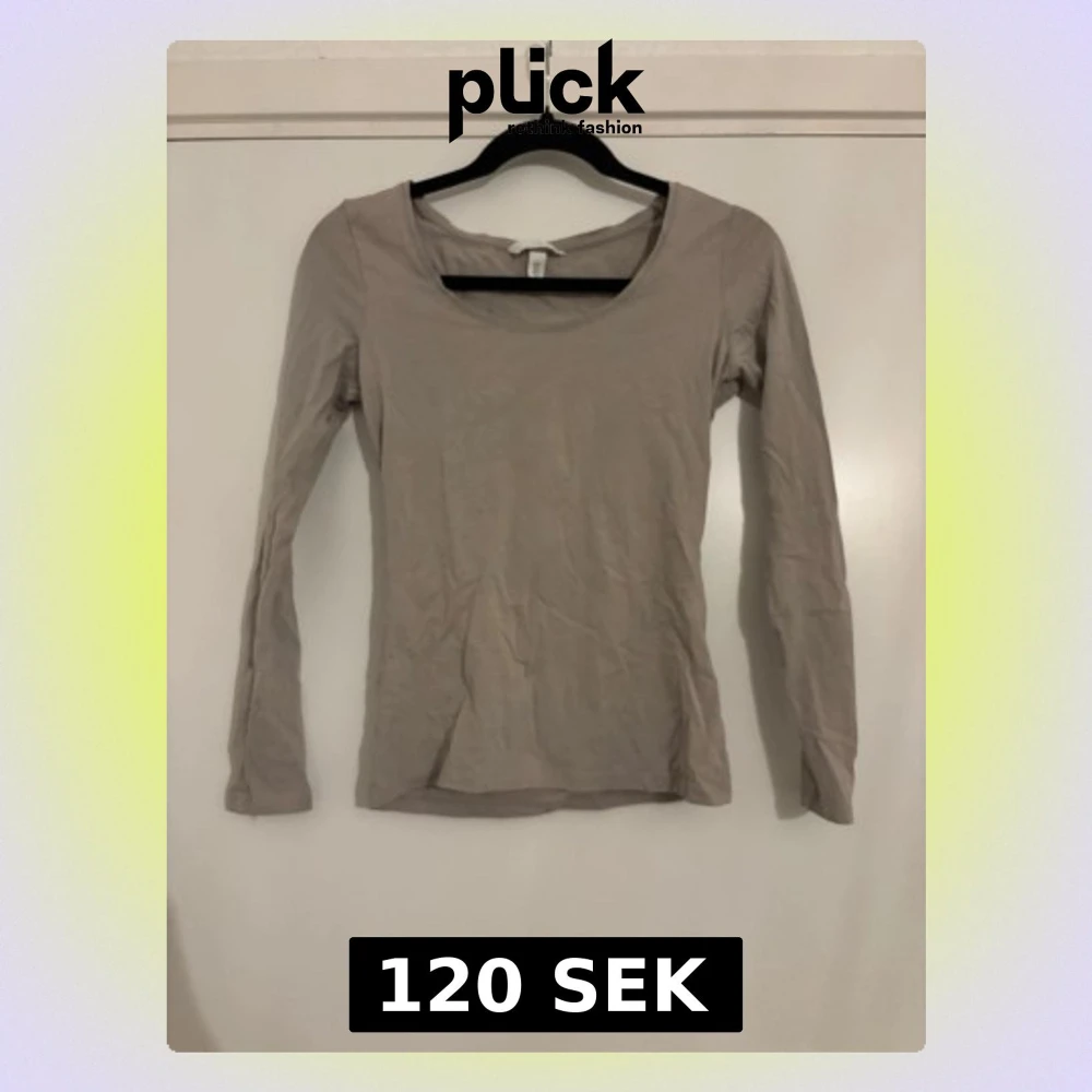 En enkel och stilren beige långärmad topp från H&M med rundad halsringning. Toppen är i mjuk bomull och har en slim passform som sitter snyggt på kroppen. Perfekt att matcha med jeans eller kjol.
