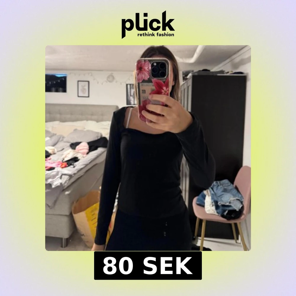 Säljer en svart långärmad topp med snygg fyrkantig halsringning. Modellen är slim och sitter tajt mot kroppen, perfekt för dig som gillar en enkel men stilren look. Materialet känns mjukt och stretchigt, vilket gör den skön att bära hela dagen.