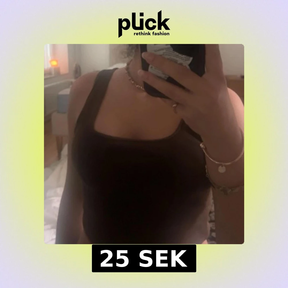 Säljer en brun croppad linnetopp från H&M med breda axelband och fyrkantig ringning. Toppen är ribbad och sitter snyggt tight mot kroppen, perfekt att styla med jeans eller kjol. Enkel och stilren design som funkar året runt.