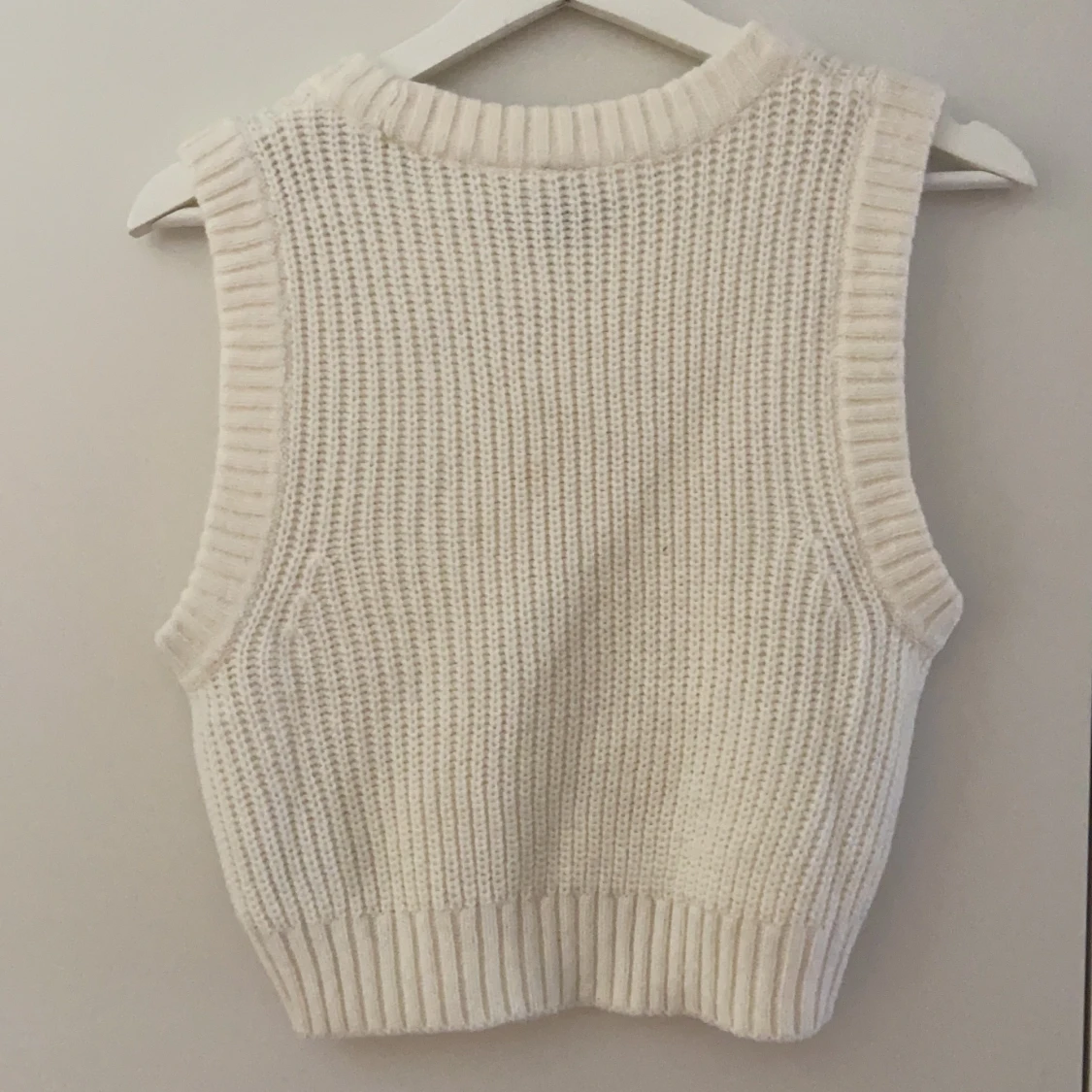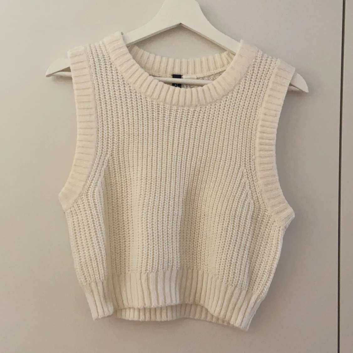 En vit croppad stickad väst. Från HM, storlek S. Endast använd en eller två gånger.