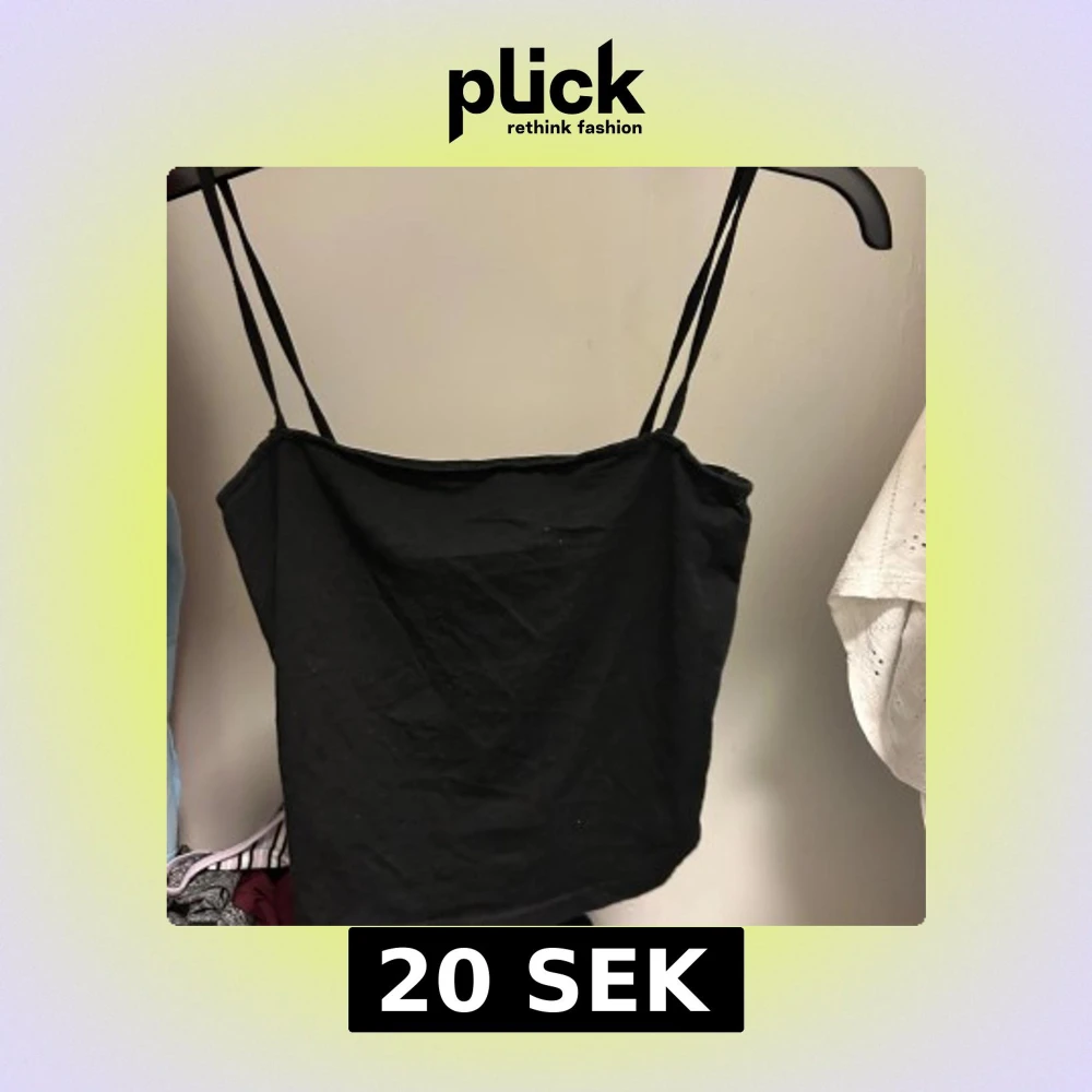 En enkel svart croppad linnetopp med tunna axelband. Perfekt att matcha med jeans eller kjol för en stilren look.