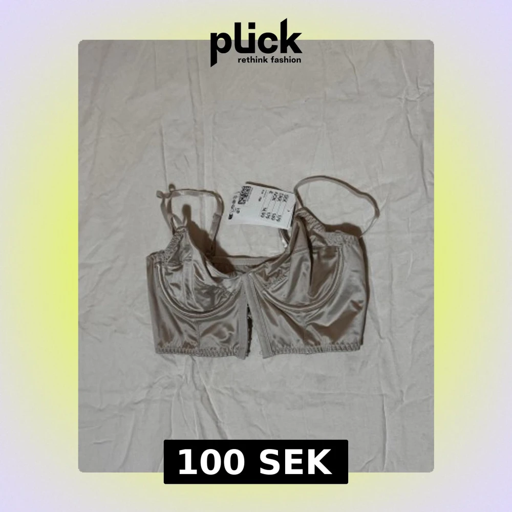 Snygg champagnefärgad korsett från H&M i glansigt satinmaterial. Modellen har smala axelband, markerade kupor och en stilren design med hakknäppning framtill. Perfekt för att lyfta din outfit med en trendig touch.