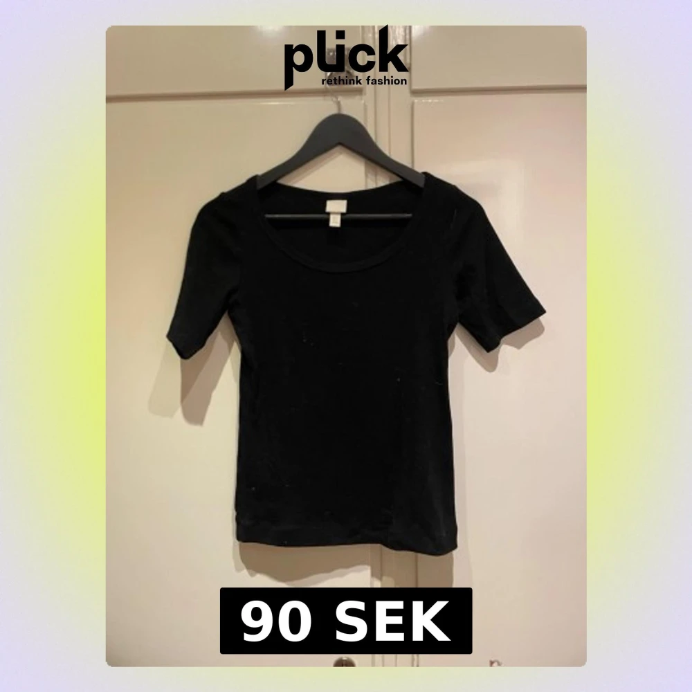 En basic svart topp från H&M med rund halsringning och korta ärmar. Modellen är figurnära och passar perfekt till jeans eller kjol. Tillverkad i mjukt bomullsmaterial som känns skönt mot huden.