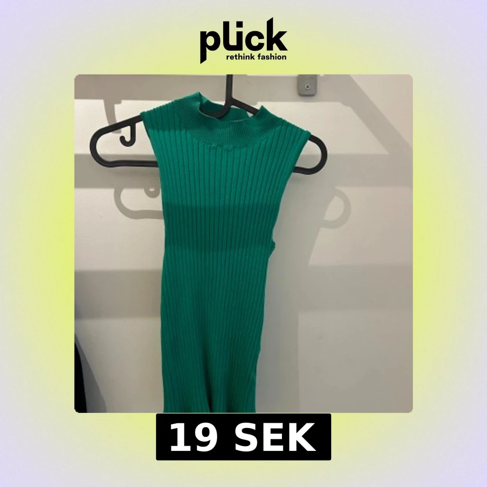 Superfin grön ribbad polotopp utan ärmar – stilren och lätt att matcha! Sitter tajt och framhäver figuren. Passar lika bra till jeans som till kjol. I toppskick.