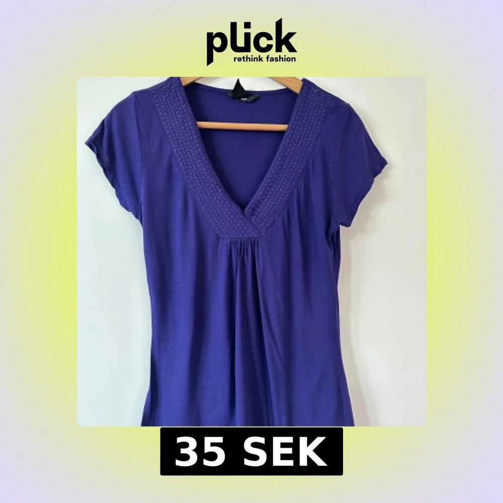 Snygg lila topp från H&M med v-ringad hals och korta ärmar. Dekorativa sömmar längs ringningen ger en extra detalj. Mjuk och skön bomull som sitter bekvämt och har en lätt rynkning framtill för en cool look.