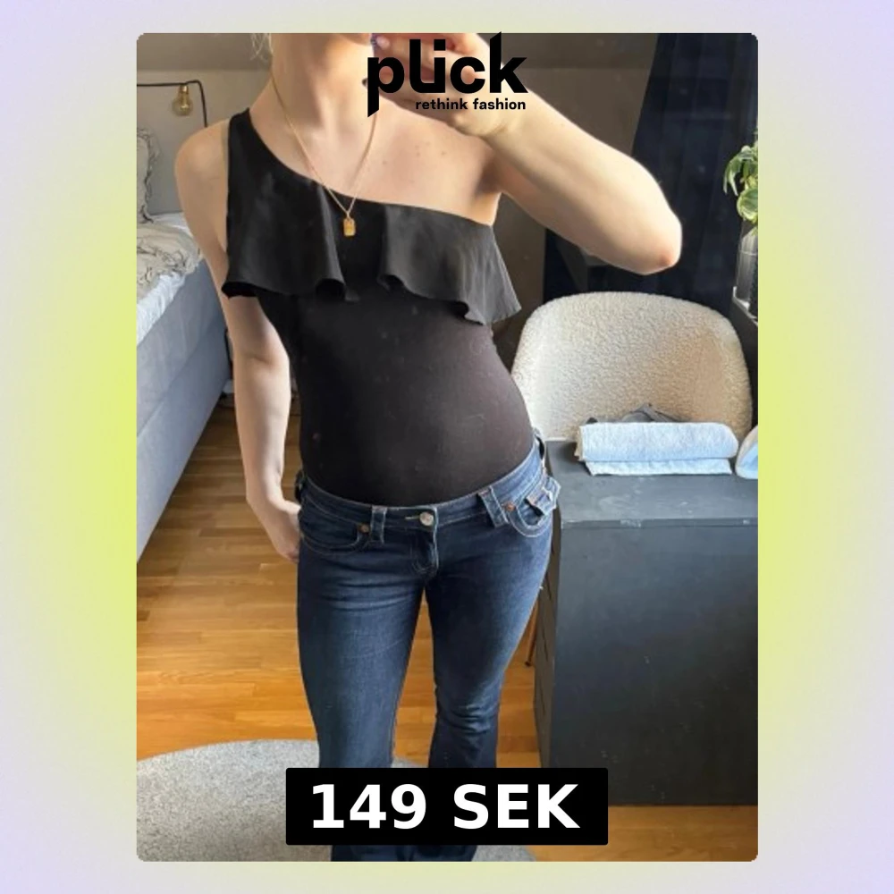 Säljer en svart oneshoulder topp med snygg volangdetalj över bröstet!🖤 Priset är diskuterbart vid snabb affär🥰