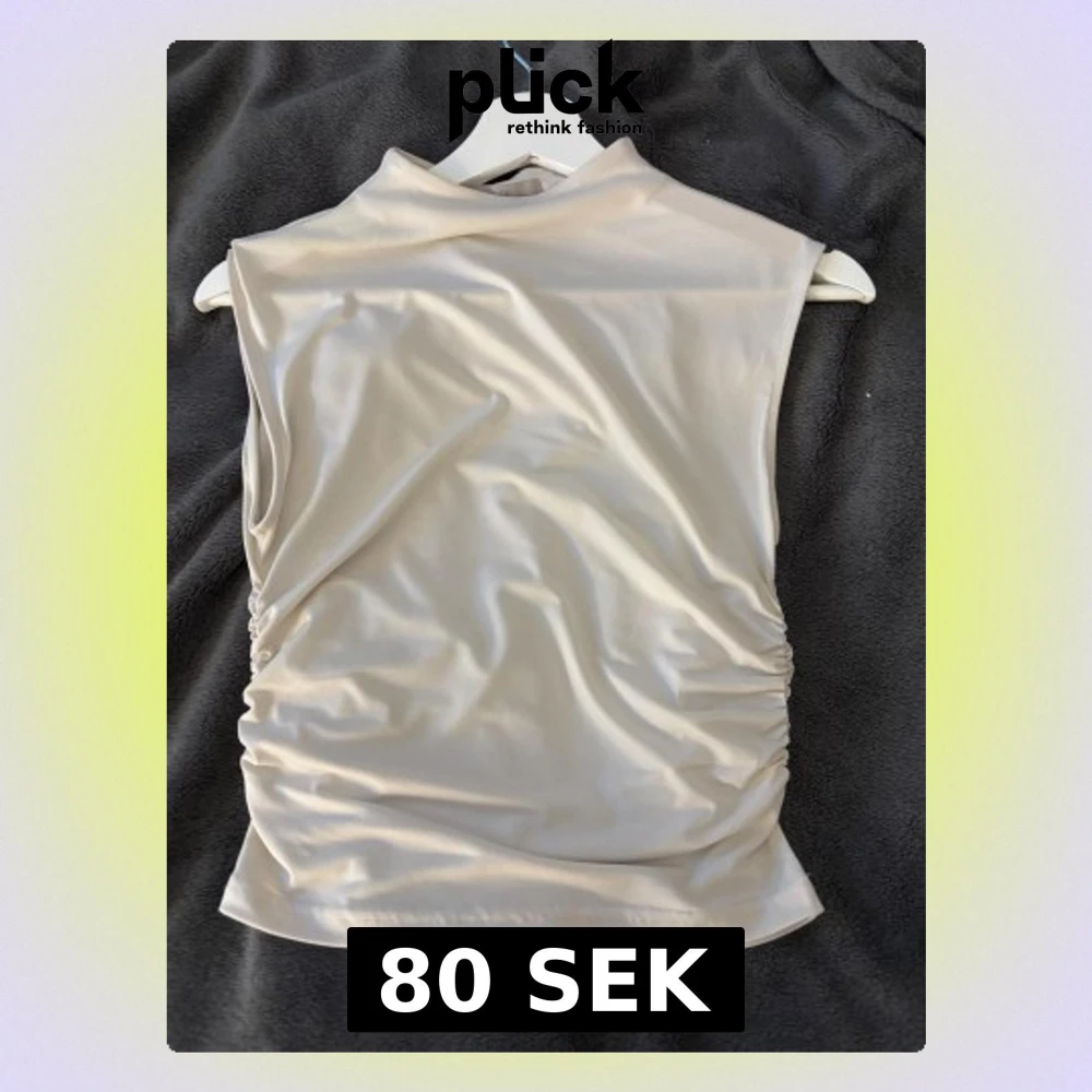 Säljer en beige polotopp från H&M i storlek S. Ärmlös topp och den går upp lite vid halsen