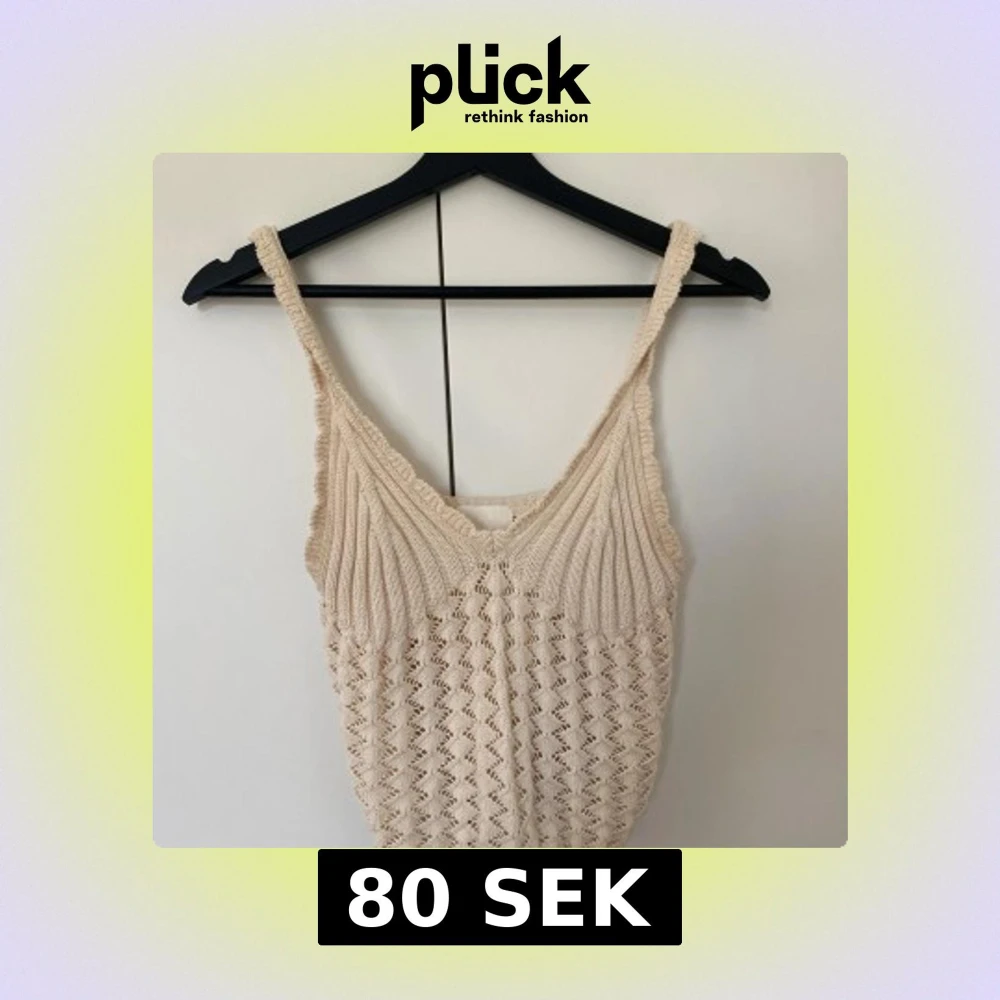 Säljer en ljusbeige stickad linnetopp från H&M i storlek S. Toppen har ett snyggt virkat mönster och v-ringad hals. Axelbanden är breda och toppen är ärmlös, perfekt för varma dagar. Materialet är mjukt och luftigt stickat.