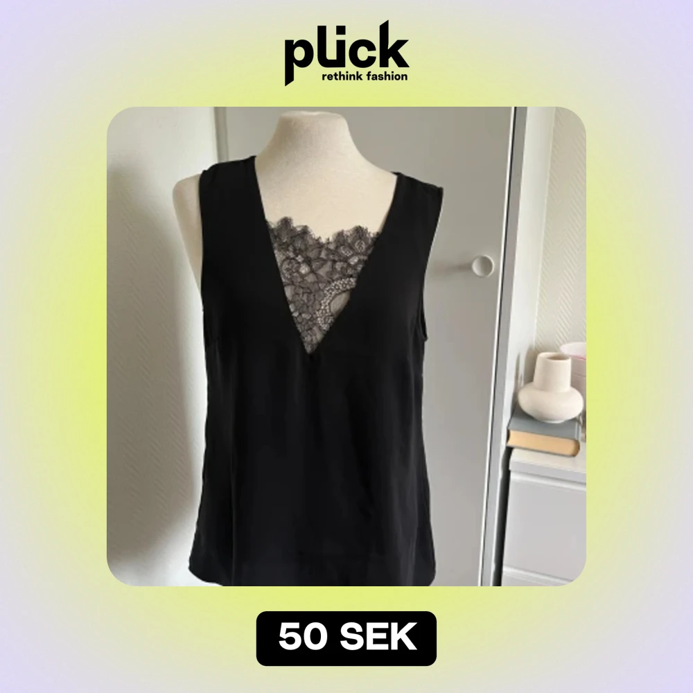 Svart linnetopp med spets från H&M - Säljer min jättefina svarta topp då den tyvärr aldrig kommer till användning. Toppen har breda axelband med spetsdetaljer och hålmönster. Den är croppad och har en rak, enkel passform som är lätt att styla till jeans eller kjol. Endast använd en gång💕