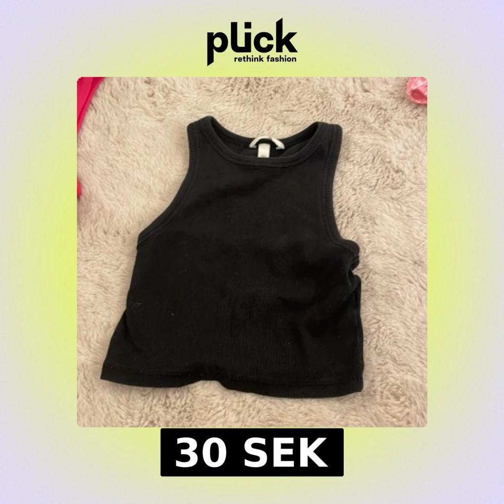 En svart ribbad linnetopp från H&M i storlek S. Toppen är croppad och ärmlös med klassisk rund halsringning. Perfekt till jeans eller kjol för en enkel och stilren look. 💗