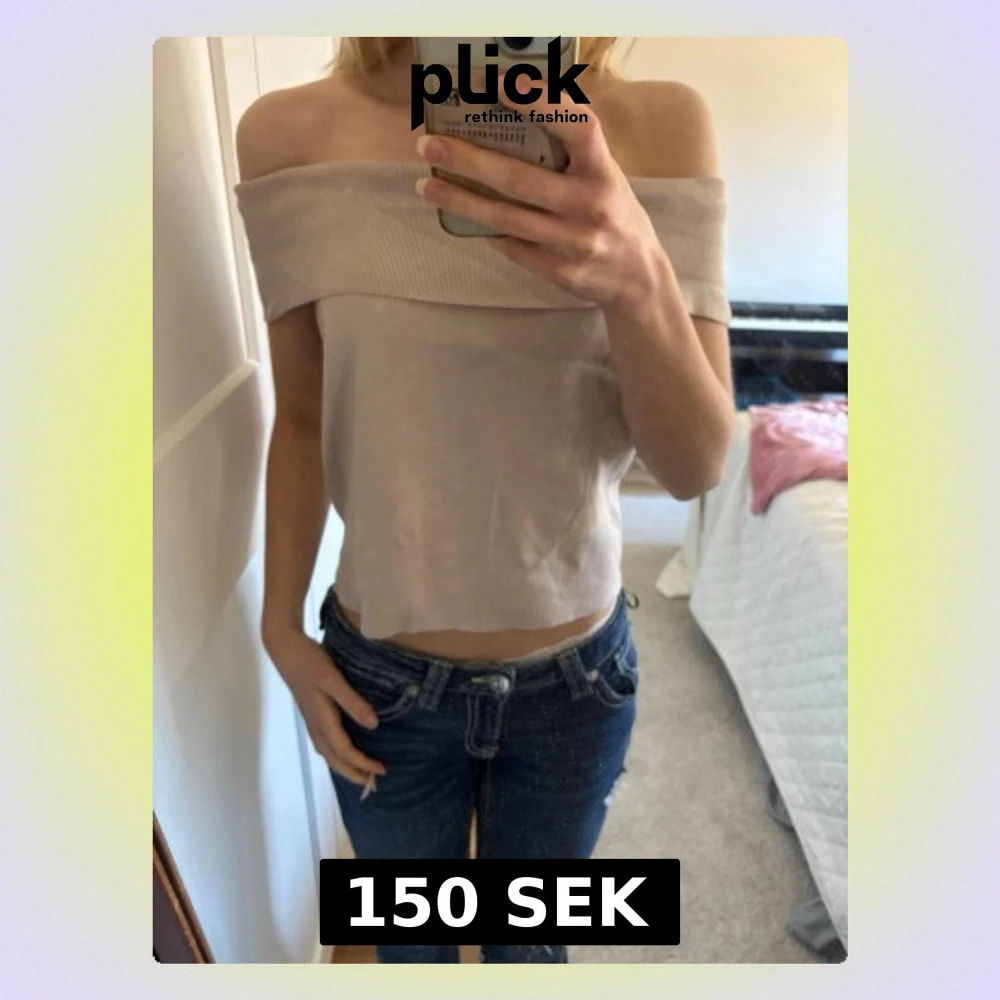 Trendig beige offshoulder topp från H&M i ribbad bomullsblandning. Croppad modell som sitter snyggt över axlarna och passar perfekt till jeans eller kjol. Enkel och stilren design som är lätt att matcha. Säljer på grund av att den e för stor.