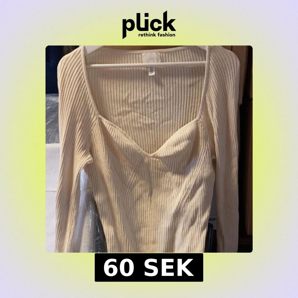 Snygg beige ribbad topp med lång ärm och djup v-ringning. Figurnära passform och markerade sömmar framtill ger en modern look. Perfekt att styla med jeans eller kjol.