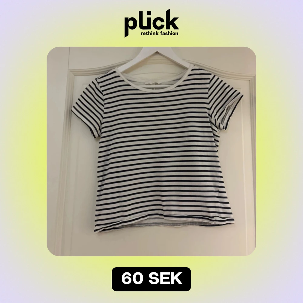 Säljer en klassisk randig t-shirt i svart och vit. Den är kortärmad och gjord i mjuk bomull! Hyfsat använd, men bra skick.