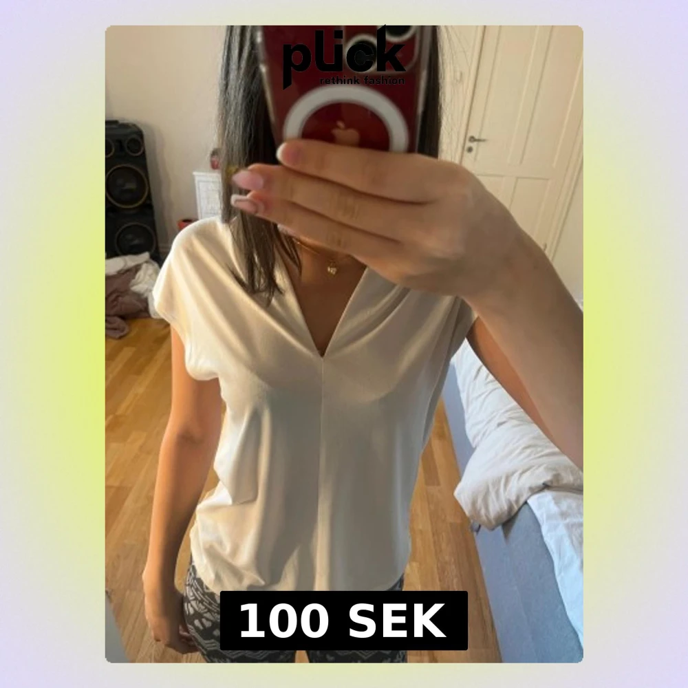 Säljer en stilren vit blus från H&M i storlek XS. Blusen har v-ringad hals, korta ärmar och är gjord i ett mjukt, lätt glansigt polyestertyg. Passformen är normal och toppen är enkel att matcha med olika outfits. Perfekt för dig som gillar clean och enkel stil.