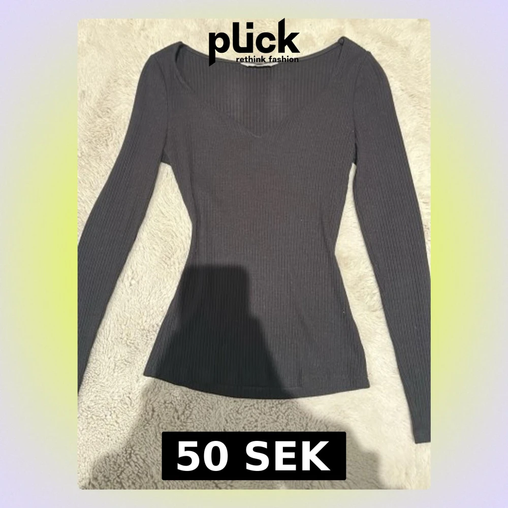 Säljer en svart långärmad topp från H&M i storlek XS. Toppen är ribbad med v-ringad hals och har en slim passform som sitter snyggt på kroppen. Perfekt basplagg till garderoben och lätt att styla med olika outfits. Som sagt den har fått hänga med ut ur min rensning från garderoben som bara har hängt där. Den är knappt använd och är i bra skick. Fläcken man ser på ena armen tar vi bort innan vi skickar iväg den