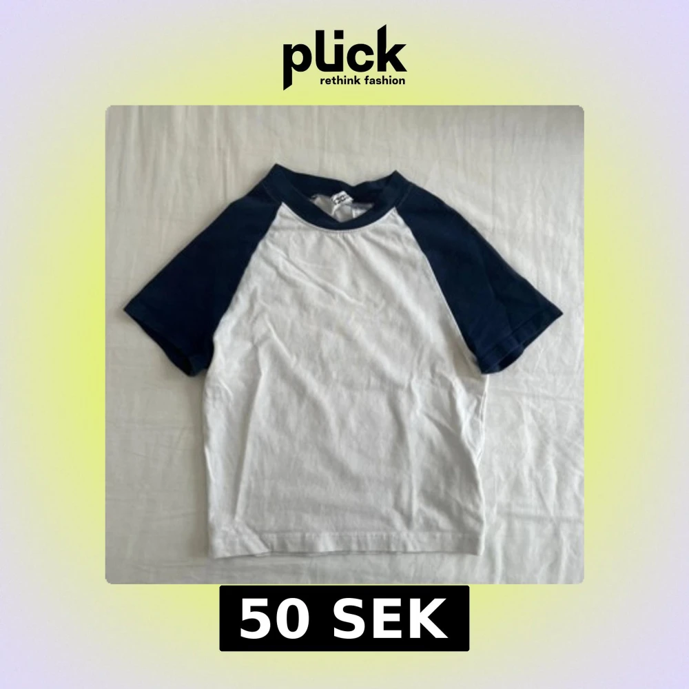 Vit top med marinblå raglanärmar från H&M. Klassisk basebollstil med rund halsringning och kontrastfärgade ärmar. Perfekt för en chill och sportig look. Gjord i mjuk bomull som känns skön mot huden.