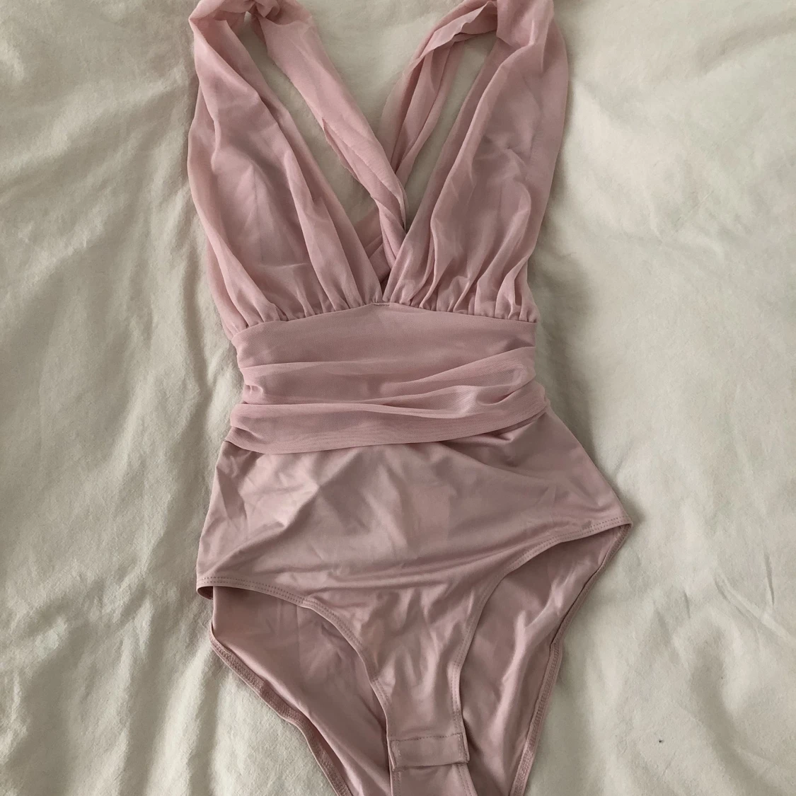 Supersnygg rosa body. Djup v-ringning och öppen rygg. Aldrig använd.