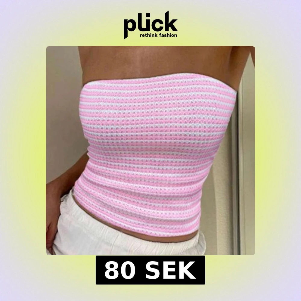 Säljer en söt tubtopp i rosa och vitt med randigt mönster. Toppen är tight och axelbandslös, perfekt för varma dagar. Superenkel att matcha med både jeans och kjol!