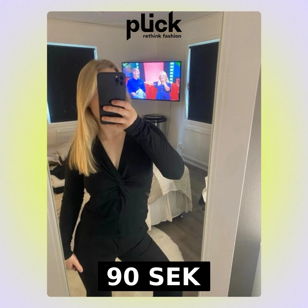 Snygg svart omlottopp med v-ringning och twistad detalj framtill. Toppen har lång ärm och är figurnära i modellen, perfekt för dig som gillar en stilren och enkel look😊