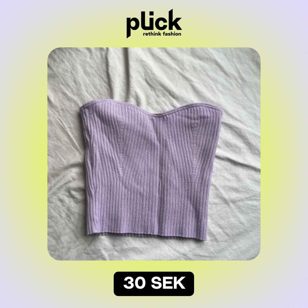Enkel lila tubtopp, sitter väldigt thigt. Ingen risk för att åka ner eftersom det finns klister vid brösten.