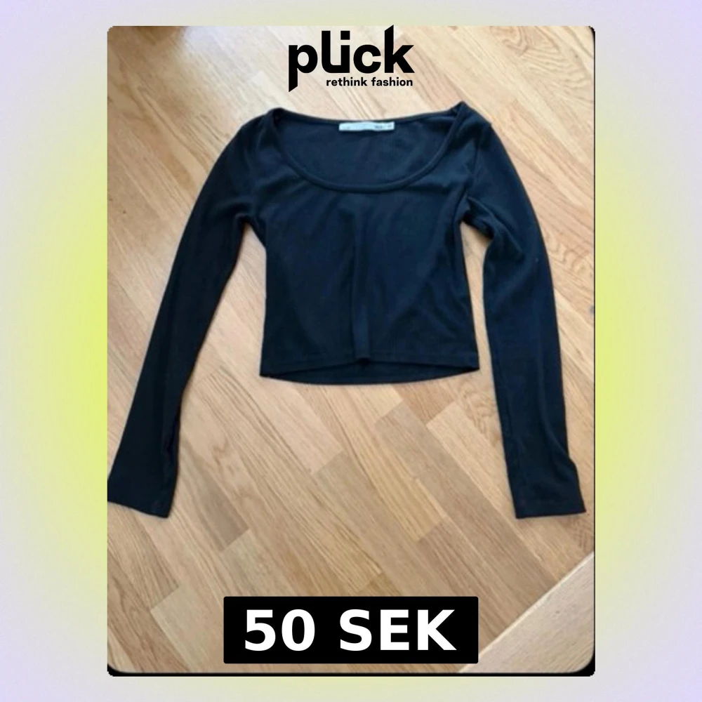 En svart långärmad topp med croppad passform och rundad halsringning. Perfekt att styla med jeans eller kjol för en trendig look. Enkel och stilren design som passar till många outfits.