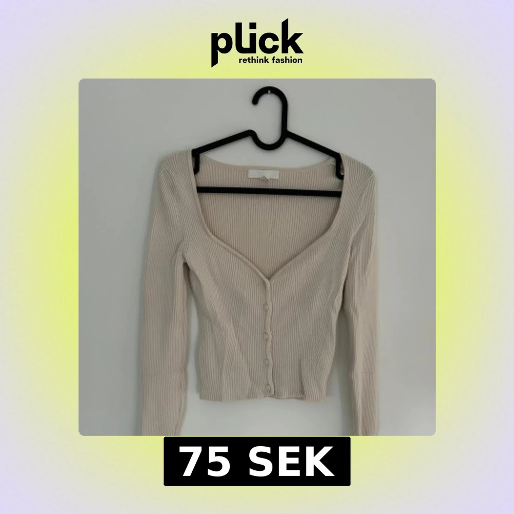 Superfin croppad topp från H&M i beige ribbat material. Djup v-ringning, långa ärmar och knappar framtill ger en snygg och trendig look.