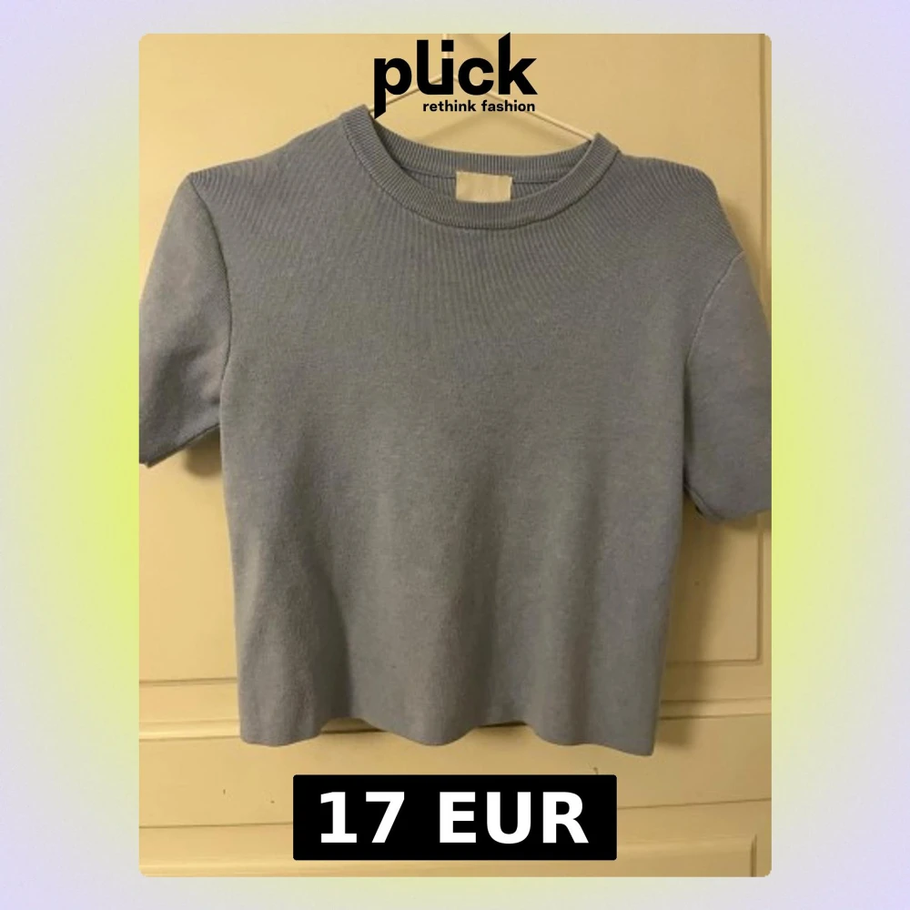 Säljer en ljusblå, lite croppad, kortärmad stickad topp från H&M i storlek XS.
