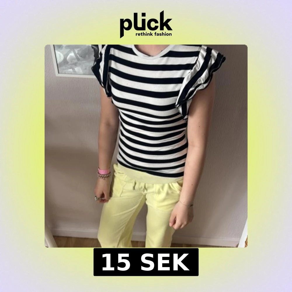 Superfin svartvit randig topp från new yorker med volangdetaljer på ärmarna. Modellen är figurnära och har rund halsringning. Perfekt för dig som gillar en lekfull och trendig stil med extra fokus på axlarna. Aldrig använd!