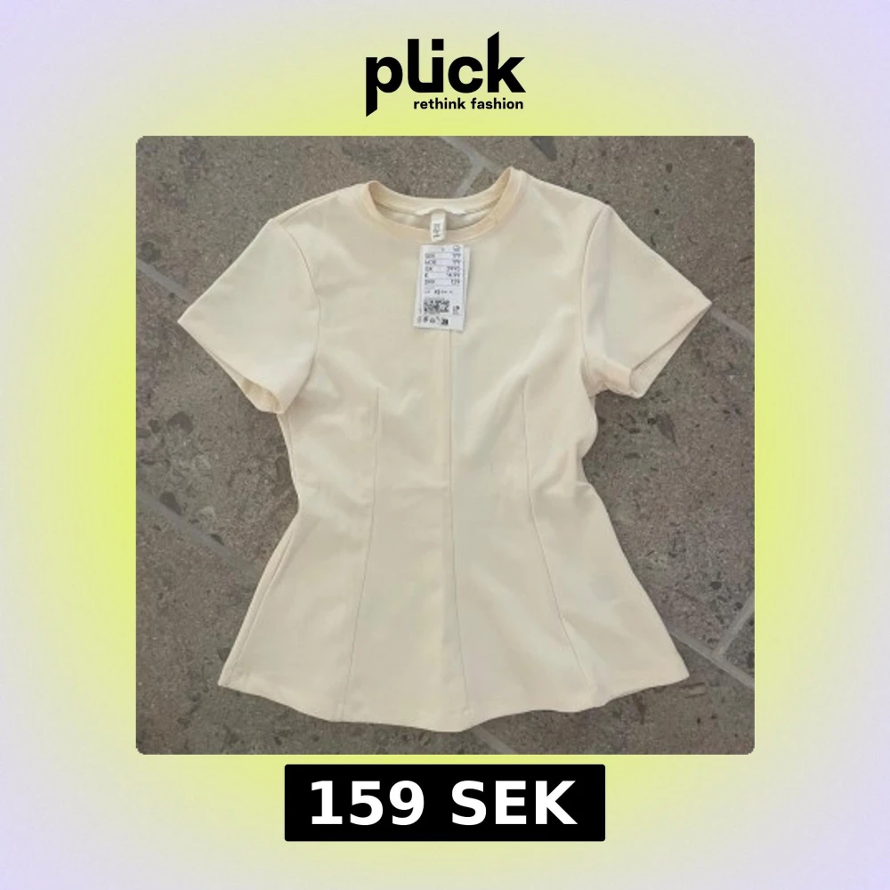 Supersnygg gul topp från H&M med figursydd passform och korta ärmar. Tröjan har bara testats en gång men har några sminkfläckar som borde gå bort efter en tvätt💗