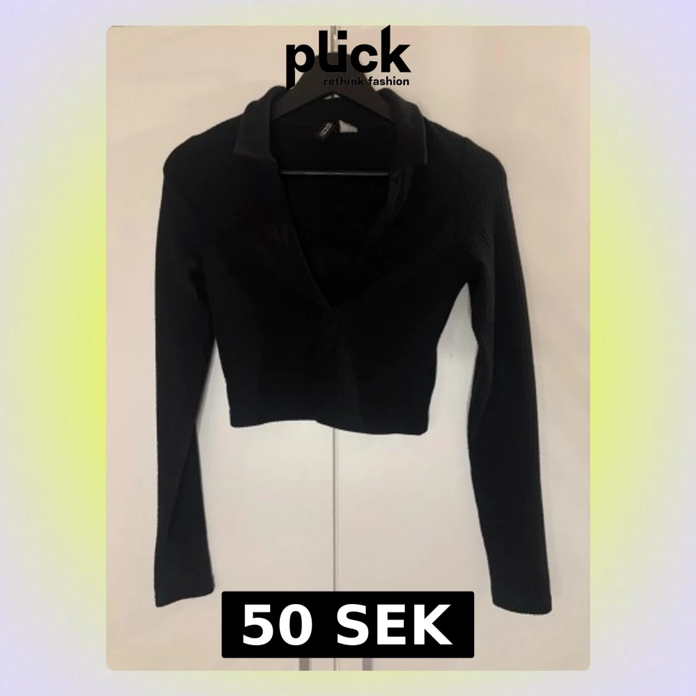 Säljer en svart croppad topp från Hm med v-ringning och krage. Toppen har långa ärmar och är tillverkad i ett helt okej stretchigt material som sitter snyggt på kroppen. Perfekt för dig som gillar en stilren look💕