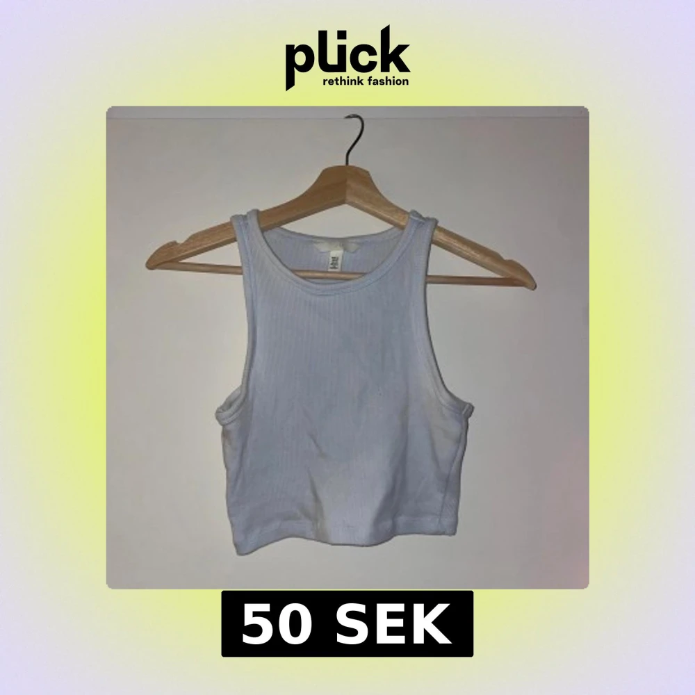 Säljer en vit ribbad linnetopp från H&M. Toppen är ärmlös och croppad, perfekt för varma dagar. Den har en enkel och stilren design som passar till det mesta. Perfekt för sommaren!