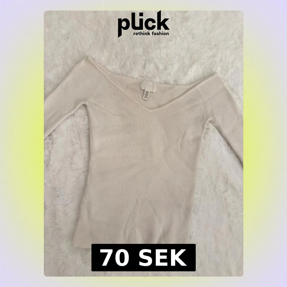 Superfin offshoulder topp från H&M i ljusbeige färg. Toppen är ribbad och har lång ärm med en snygg v-ringning. Tillverkad i mjuk bomull som sitter skönt och följer kroppen. Perfekt att styla med jeans eller kjol för en trendig look. Helt ny.