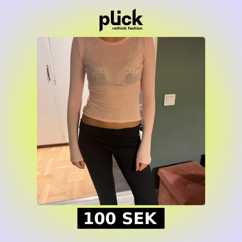 Säljer en ljusrosa ribbad topp med lång ärm och croppad passform. Toppen är figurnära och har en rund halsringning. Perfekt för dig som gillar en enkel men ändå trendig look.
