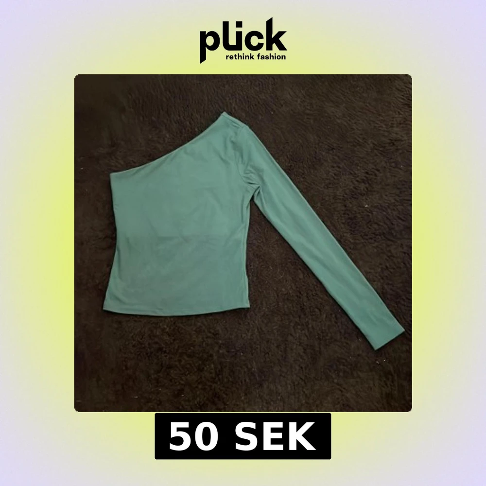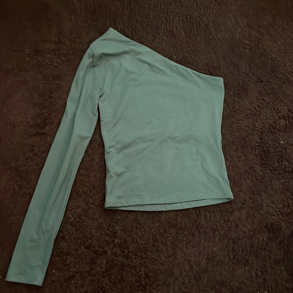 Snygg grön långärmad topp från H&M i one shoulder-modell. Toppen har en tight passform och är tillverkad i ett stretchigt material som sitter skönt på kroppen. Perfekt för dig som vill sticka ut med en cool och modern look.💕