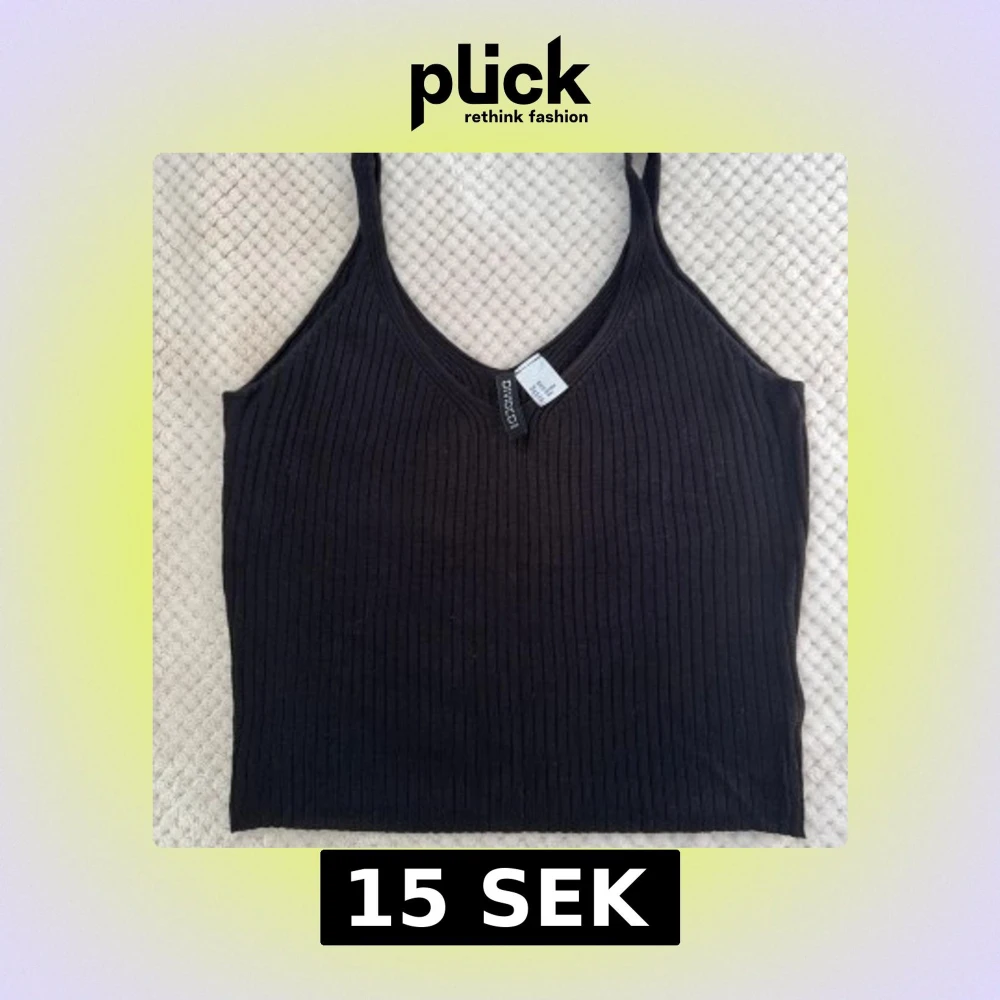 Svart ribbad linnetopp med smala axelband och v-ringning. Perfekt att styla till olika outfits och enkel att matcha med både jeans och kjol.