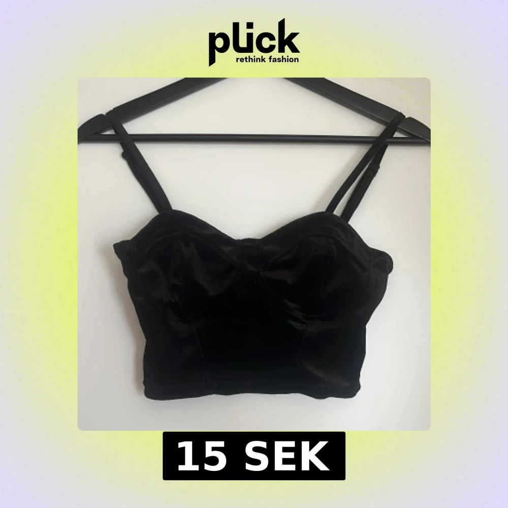 Snygg svart sammetstopp med dubbla axelband och en croppad design.