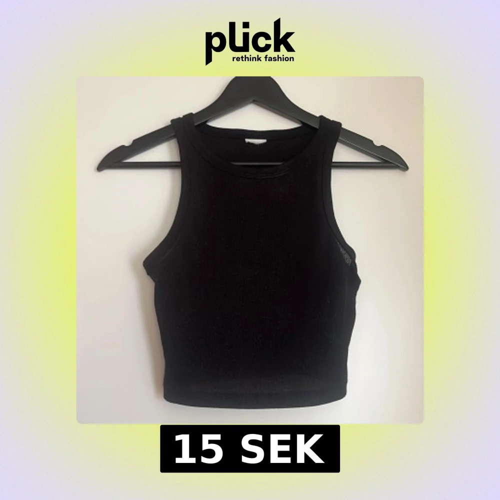 Snygg svart croppad linnetopp med glittrig yta. Perfekt för en kväll ute eller en fest. Toppen är ärmlös och har en ribbad struktur som ger en stilren look.