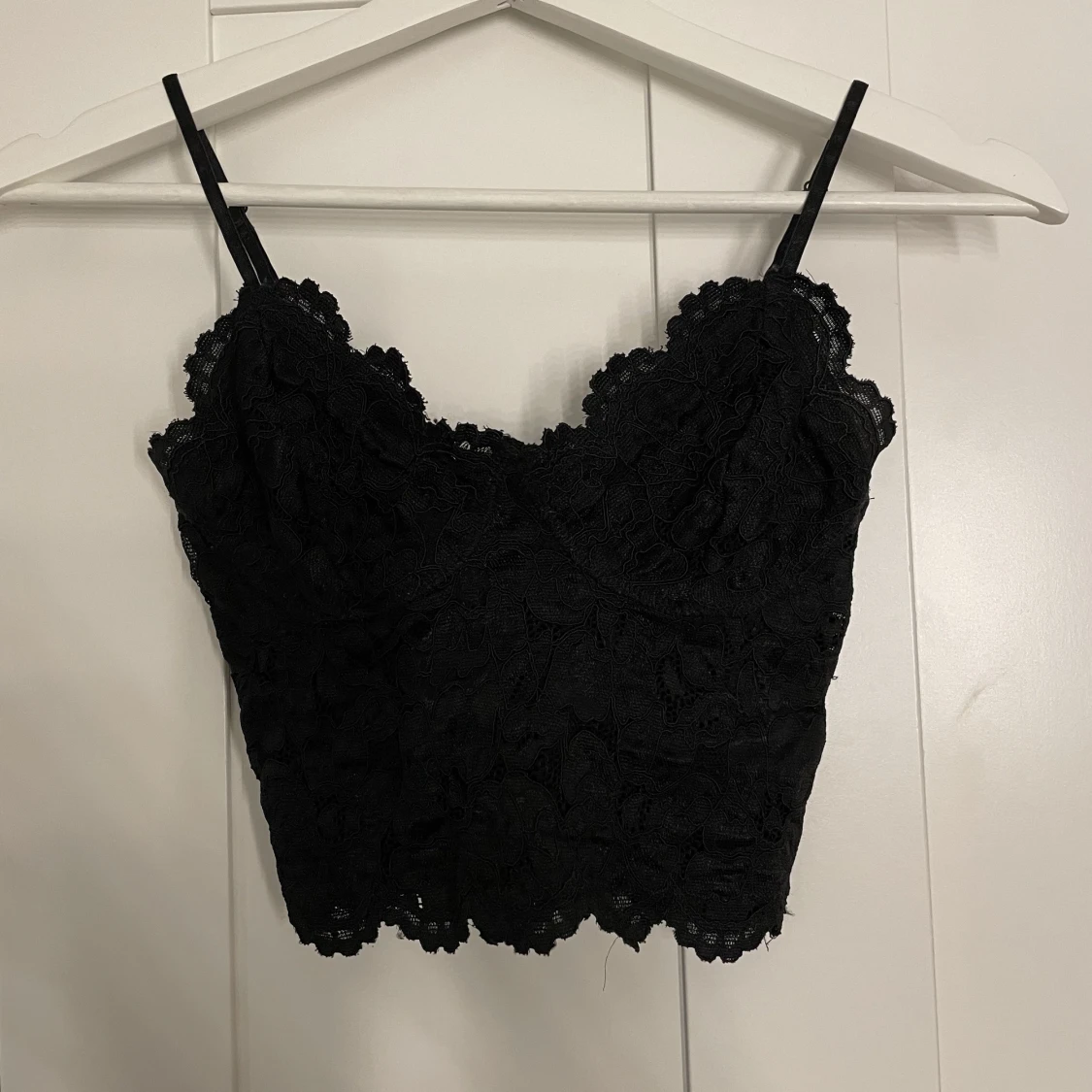 Svart spets topp i storlek xs
