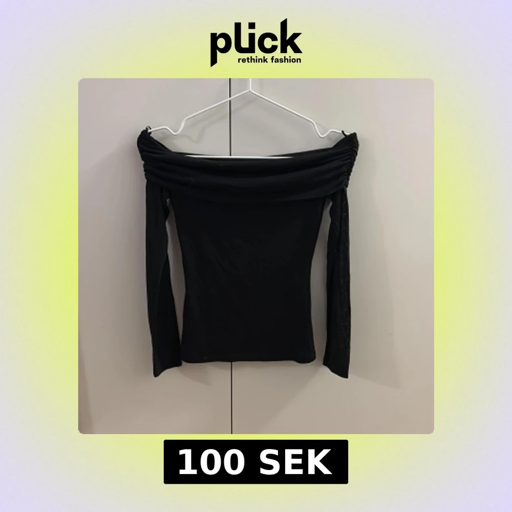 Snygg svart offshoulder topp med långa ärmar och bred, draperad kant upptill. Perfekt för dig som vill ha en stilren och trendig look. Toppens passform är tight och materialet känns mjukt mot huden.