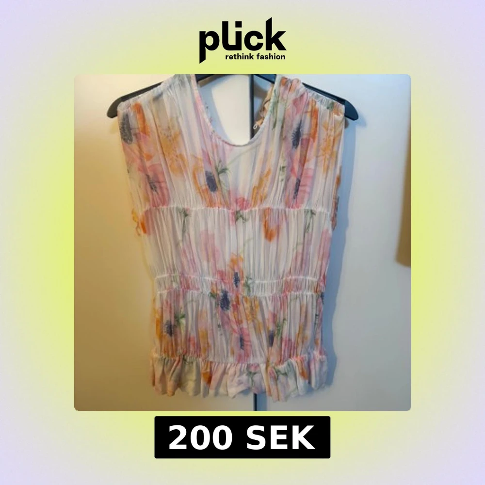 Somrig blommig blus med volangdetaljer. I strl xs. Köptes förra sommaren
