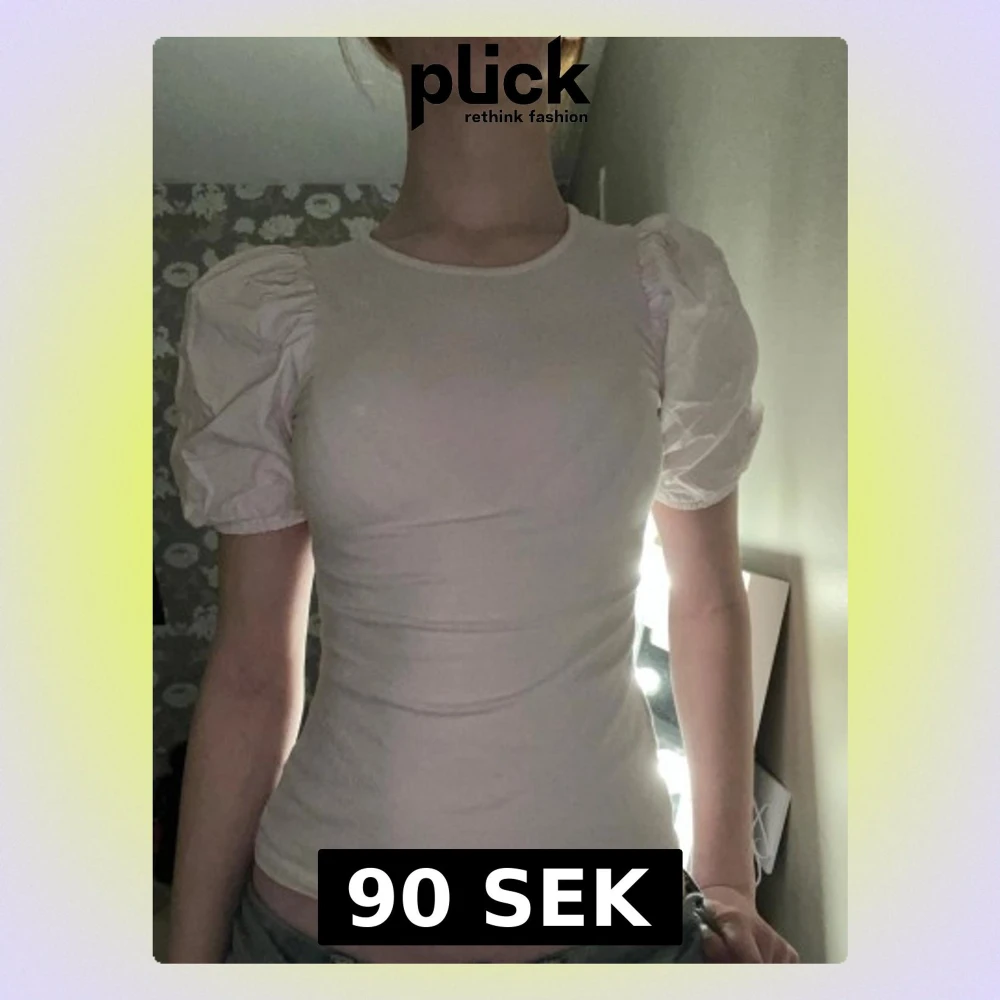 Supersöt ljusrosa topp med puffiga kortärmar och rund halsringning. Den är ganska tight i passformen men passar ändå storlek S🌸💕