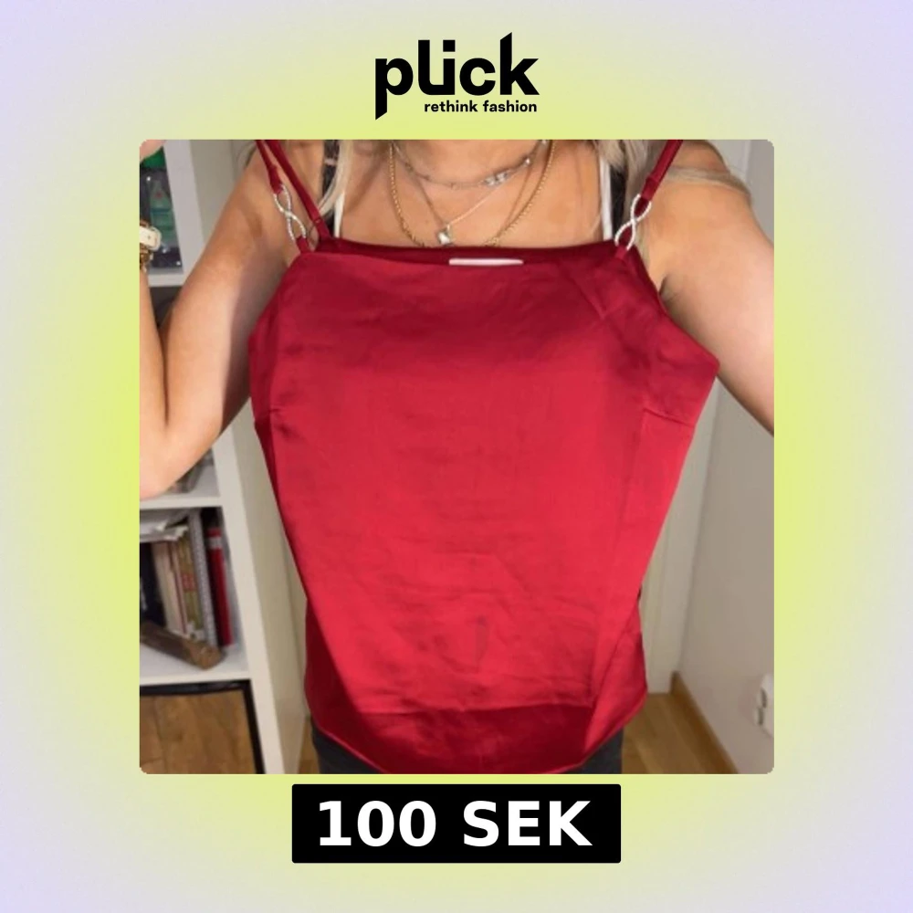 Säljer ett rött linne i satin med smala axelband och rak halsringning. Perfekt för att styla med smycken och passar till många olika outfits. Linnet har en glansig finish och är lätt att bära.