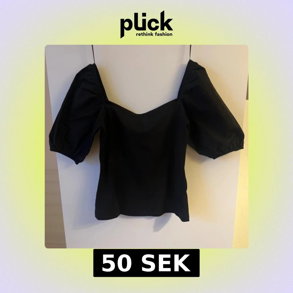 Snygg svart offshoulder topp från H&M med puffiga ärmar. Perfekt för en stilren look. Tillverkad i ett mjukt material som ger en bekväm passform.