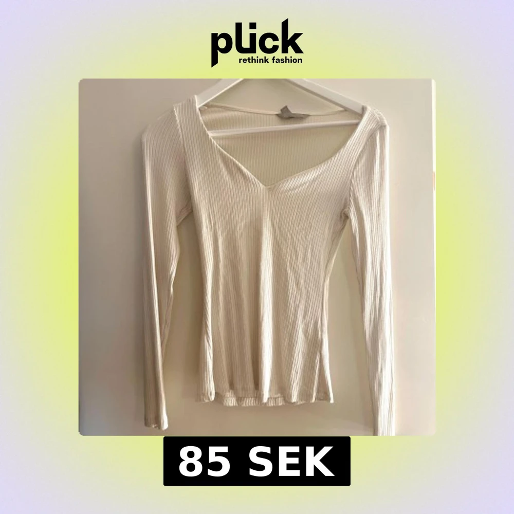 Säljer en vit ribbad topp med lång ärm och snygg v-ringning. Toppen är figurnära. Bra skick!
