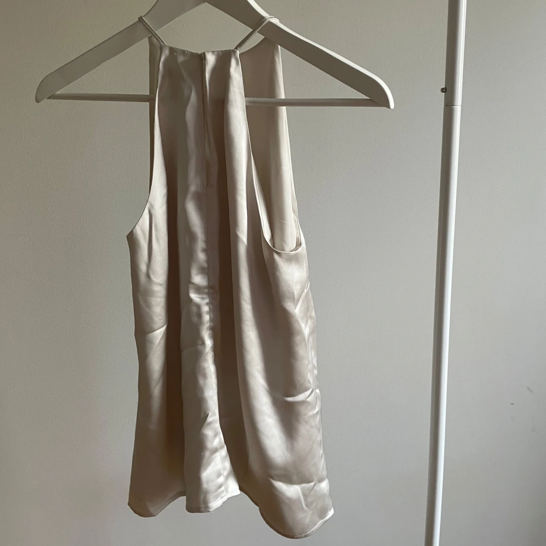 Halterneck topp i satin aktigt tyg. Från HM, storlek XS. Obs! Mindre repor i nacken, och en maska på framsidan. #satin #rich #halterneck #party #fest #elegant #posh