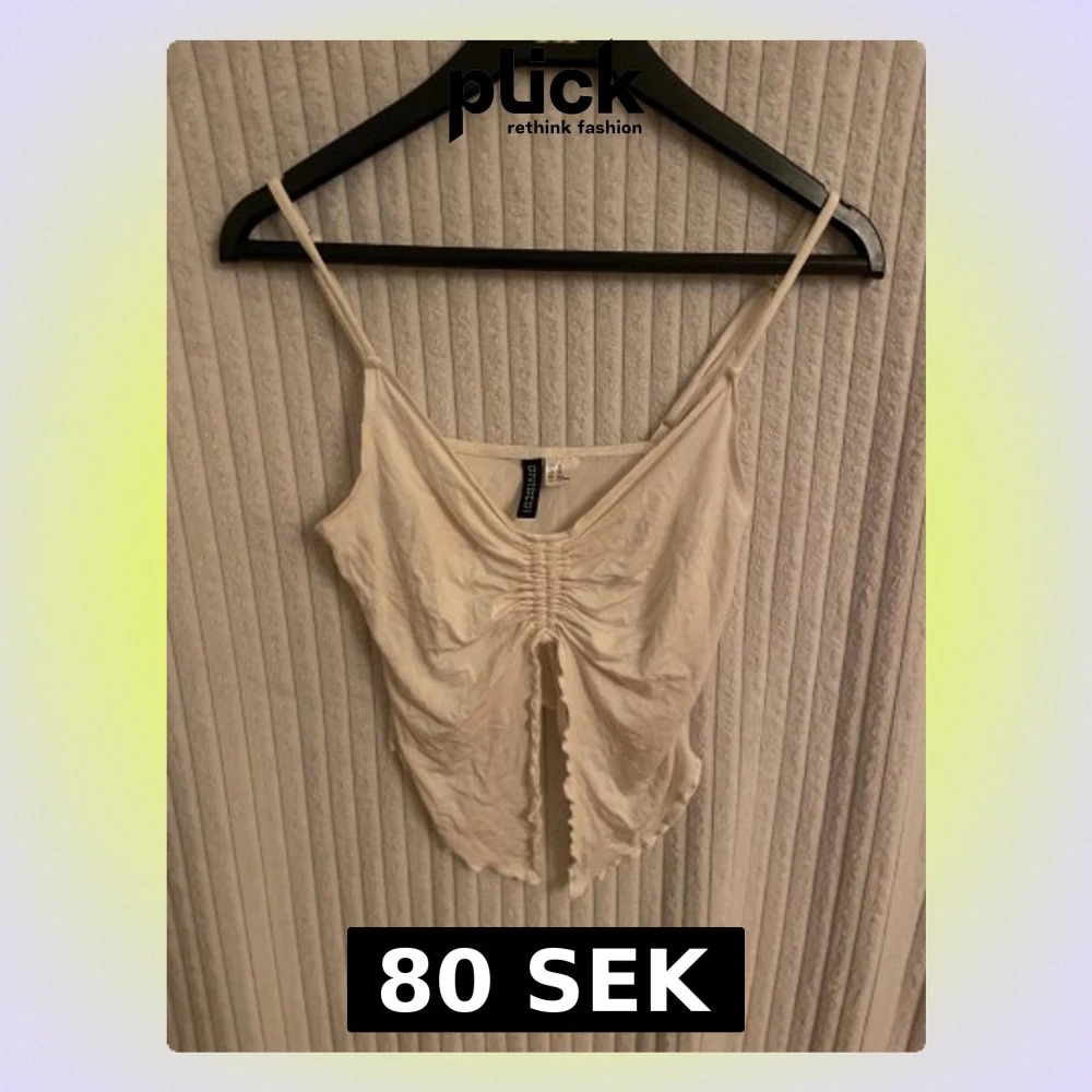 Säljer en ljusvit linnetopp med smala axelband och snygg snörning framtill. Toppen har en v-ringad design och croppad passform med vågig kant nedtill. Den är i bra skick och säljs i befintligt skick.